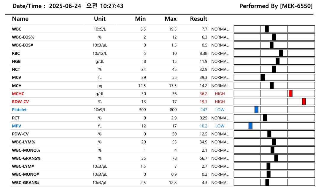 HGB (ํค๋ชจ๊ธ๋ก๋น), HCT (์ ํ๊ตฌ ์ฉ์ ๋ฅ ) ๋ฑ ๋ชจ๋ ์ ์