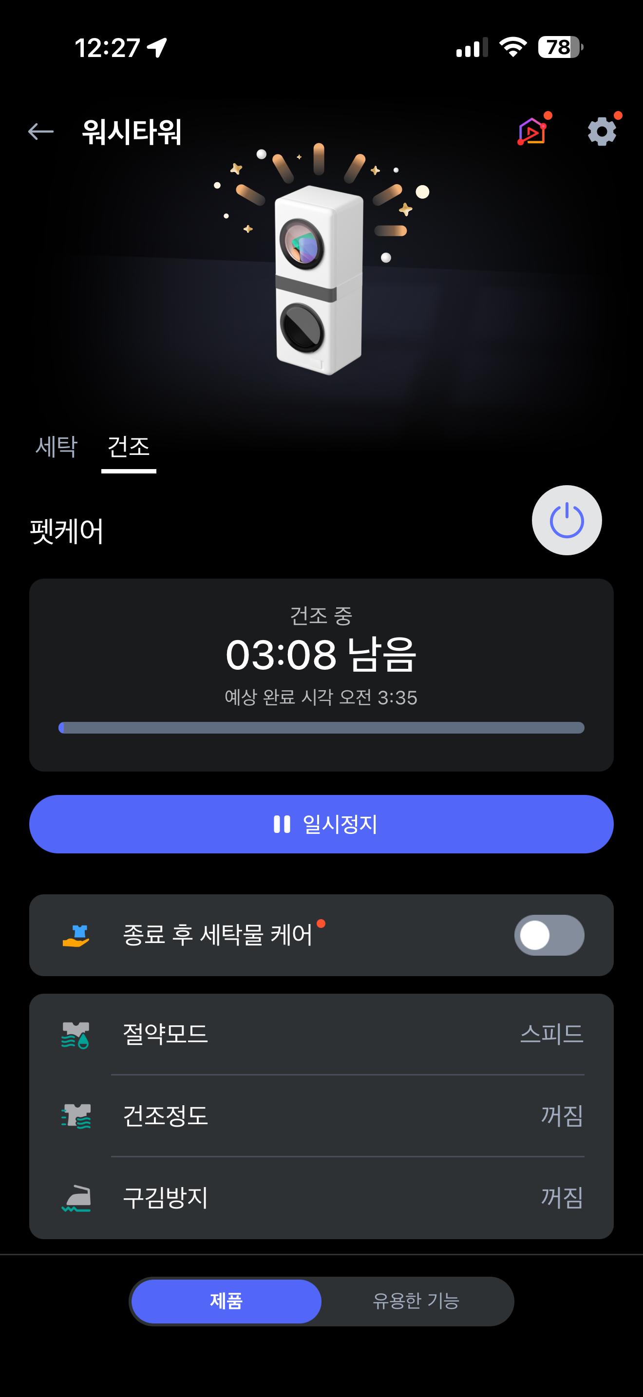 5. ์์/์ผ์์ ์ง ๋ฒํผ์ ๋๋ฅด๋ฉด ๊ฑด์กฐ๊ฐ ์งํ๋ฉ๋๋ค